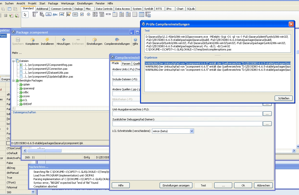Ja irgendwie will das nicht so recht bei mir habe eben versucht gemäß Deiner Anleitung http://wiki.lazarus.freepascal.org/Zeos_tutorial/de" onclick="window.open(this.href);return false; Zeos zu installierne in der Verion 6.6.5 (Stable) und bekomm beim installieren Fehlermeldungen um die Ohren geschmissen, wo ich nicht weiß wieso ich die bekomm!