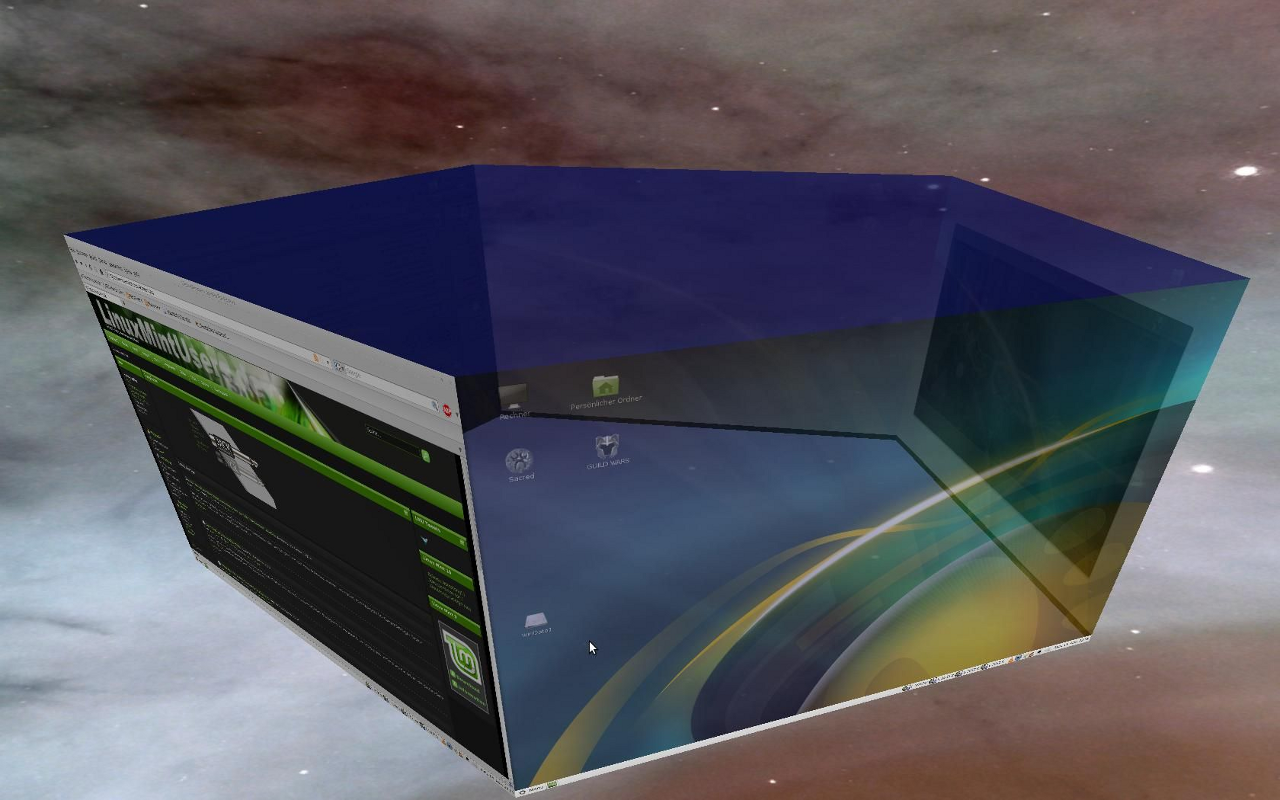 3D-Effekte bzw. Cubedesktops finde ich Spielereien. Großteil von Rechnerleistung für 1 Sekunde Desktop wechseln ist ja nicht ökonomisch.
