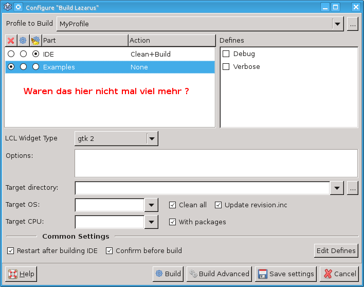 Fehlende Optionen im Build Lazarus Dialog ..