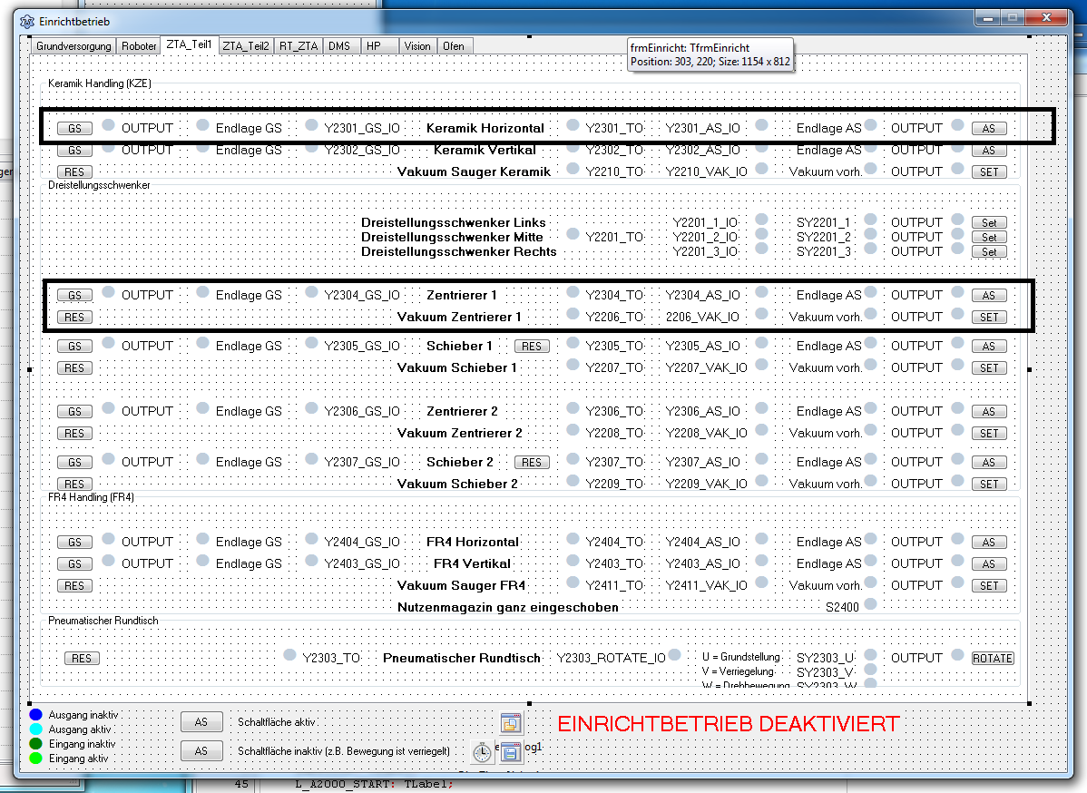 Im Einrichtbetrieb kann man von Hand z.B. alle Zylinder verfahren usw.