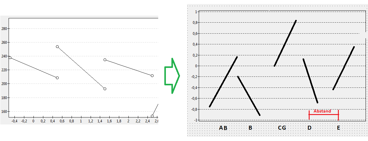 Das widerspricht aber deinen Bildern, dann damit wären die Linien senkrecht.Sie haben einen "X-Wert" (1,2,3,4,5....) und zwei "Y-Werte"