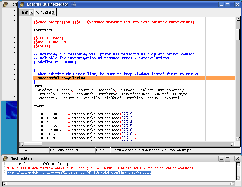 Das angehängte Bild kommt, wenn ich Lazarus versuche neu zu erstellen mit Win32