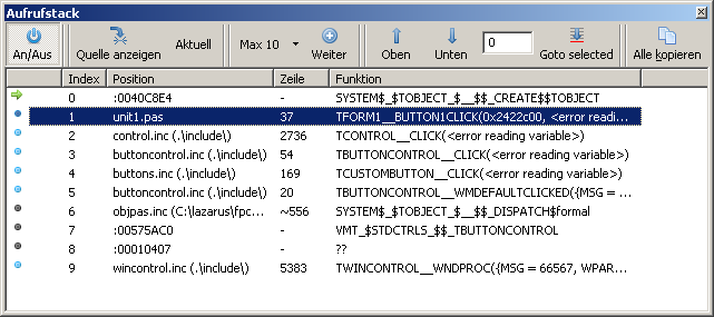 Bei mir sieht der Ausfrufstack, bei dem Beispiel, wie angefügt aus: