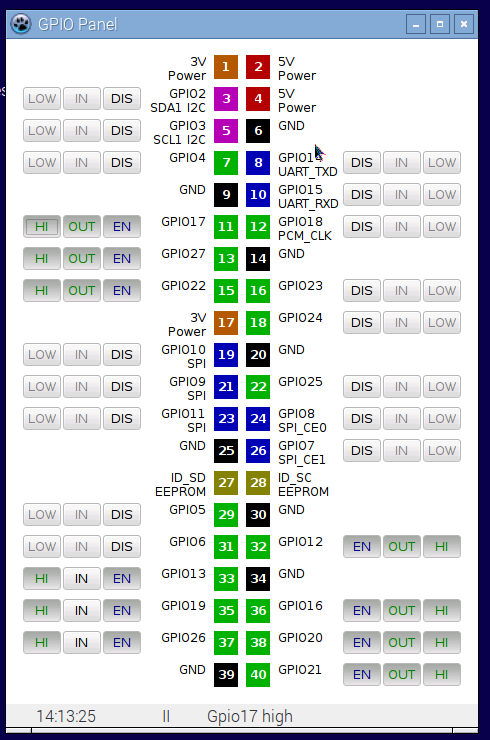 Das Programm erstellt eine GUI mit TToggleBoxen und einen Timer. Dann scannt es alle 100msec die GPIOs in /sys/class/gpio und zeigt die aktiven GPIOs als Zustand der Toggleboxen an. Durch Klick auf die Toggles kann man GPIOs aktivieren oder den Zustand ändern. Das funktioniert auch wunderbar.