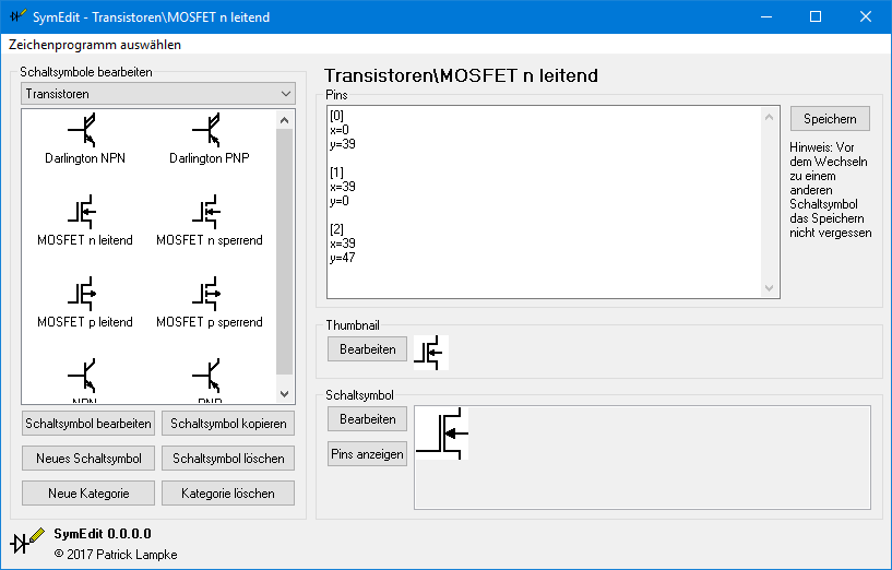 InitiateSystemShutdownExA(nil, nil, 0, true, false, $0005000F);Außerdem hab ich noch die Liste der Kategorien von einer ComboBox zu einer ListBox geändert, was jetzt wesentlich übersichtlicher ist und zwei neue Schaltsymbole hinzugefügt (Generator und Batterie in der Kategorie "Power sources").compmgmt hat geschrieben:Mir ist grade noch ein Zusatz aufgefallen: Zeichnet man das eingelesene Image mittelsfunktioniert es zwar, allerdings nur solange, bis ein TOpenDialog oder ein TSaveDialog aufgerufen wird. Packt man noch einCode: Alles auswählen