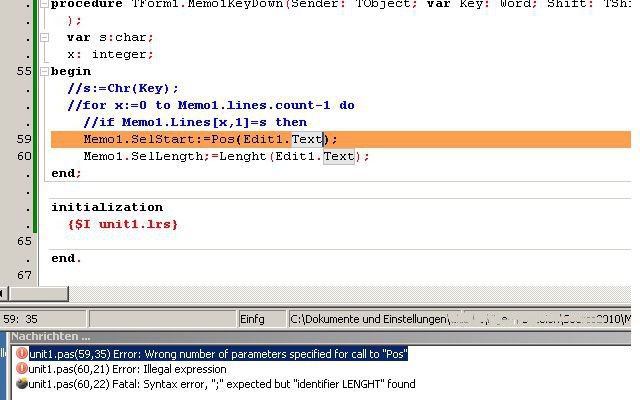 Memo1.SelLenght:=Lenght(Edit1.Text);BINGO!!!Teekeks hat geschrieben:Es heißt Length, da war ein Schreibfehler drinne...