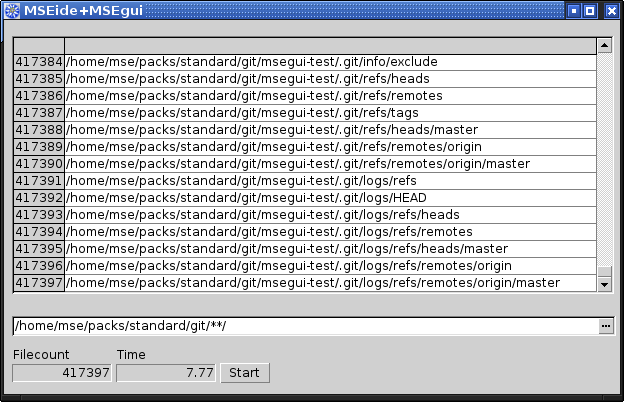 Bist du sicher, dass das Problem der directory-scan ist? Mit MSEgui komme ich für 400'000 Dateien unter Linux auf knapp 8 Sekunden inklusive Darstellung im grid.Ralf hat geschrieben: Linux: