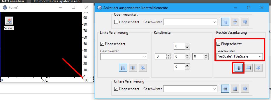 Ich hab mir jetzt mit Form.OnResize geholfen und die Komponeten selbst ausgerechnet wo sie liegen müssen.