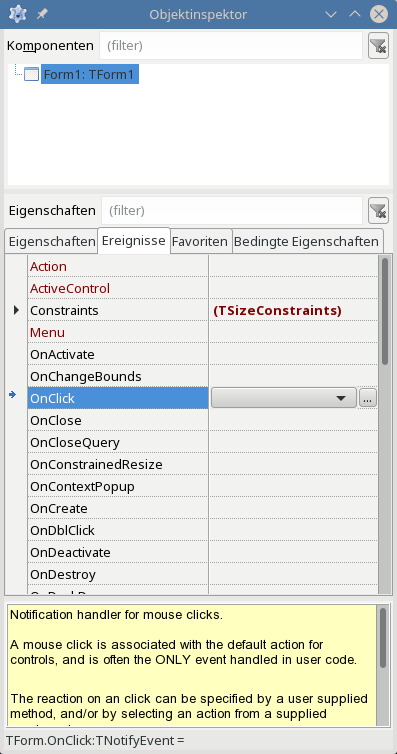 Objektinspektor->Ereignisse: Was ist denn da los?
