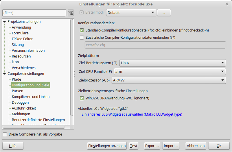 Da man anschliessend mit diesem Cross-Kompiler ARM-Programme erzeugen kann, kann man ein FPCUPdeluxe für den Raspi kompilieren (Parameter siehe Anhang).