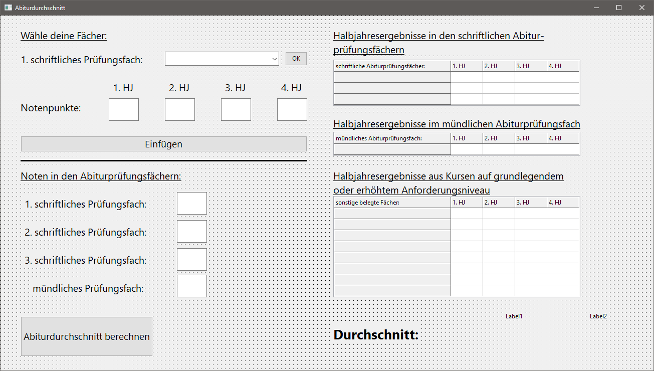 Habt ein bisschen Rücksicht mit mir, das da oben ist definitiv nicht perfekt, aber es funktioniert. Ich bin Schüler und versuche dass, was uns unsere inkompetente Info-Lehrerin vermittelt etwas auszubauen und etwas darüber hinaus zu machen...nebenbei ist das Programm auch noch nicht komplett fertig.