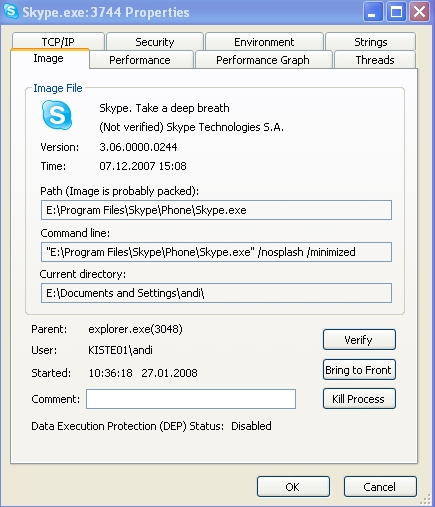 Prozessexplorer downloaden, aufrufen. Dein Programm aufrufen und im Prozessexplorer suchen. Dann linke Taste und Properties aufrufen, Unter dem Reiter Image findest due die Kommandozeile mit der es aufgerufen wurde, und sonst noch jede menge Infos.Christian hat geschrieben:Kann bitte mal jemand antworten der weiss wovon er redet ?