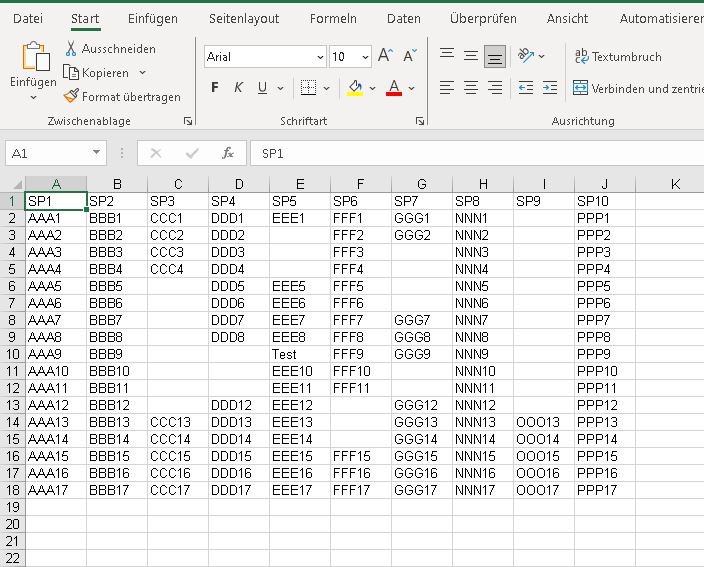 Es wird auch eine Spalte mehr ausgefüllt, als eigentlich da ist.
