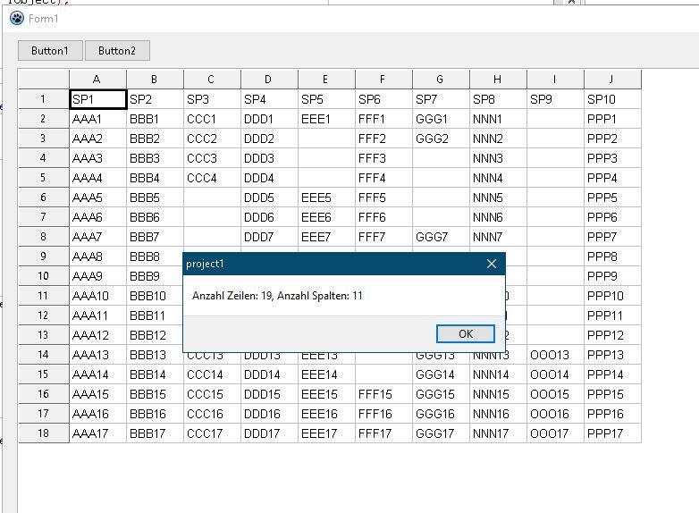 showmessage('Anzahl Zeilen: ' + inttostr(Zeile) +', Anzahl Spalten: ' + inttostr(Spalte));