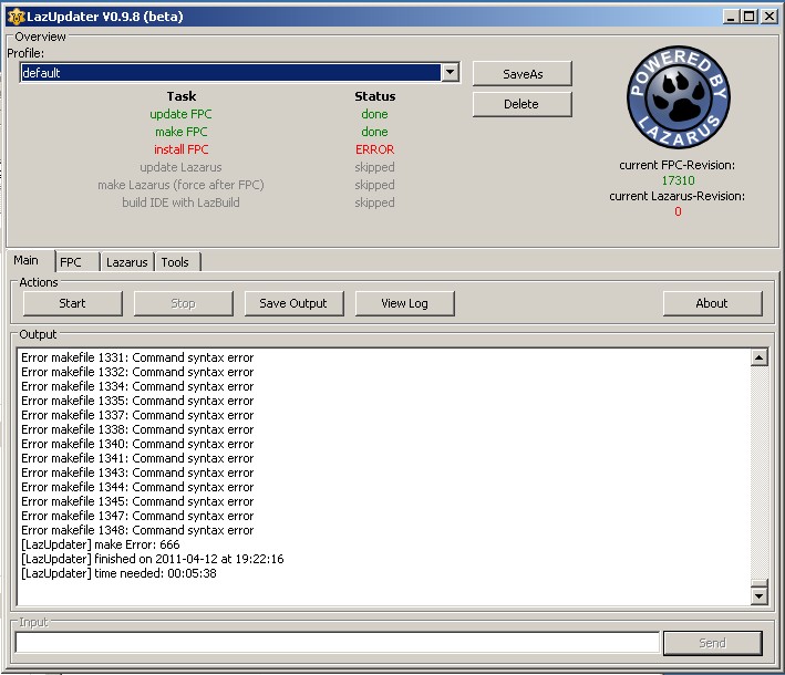 [LazUpdater] C:\freepas\binw32\make.exe clean all