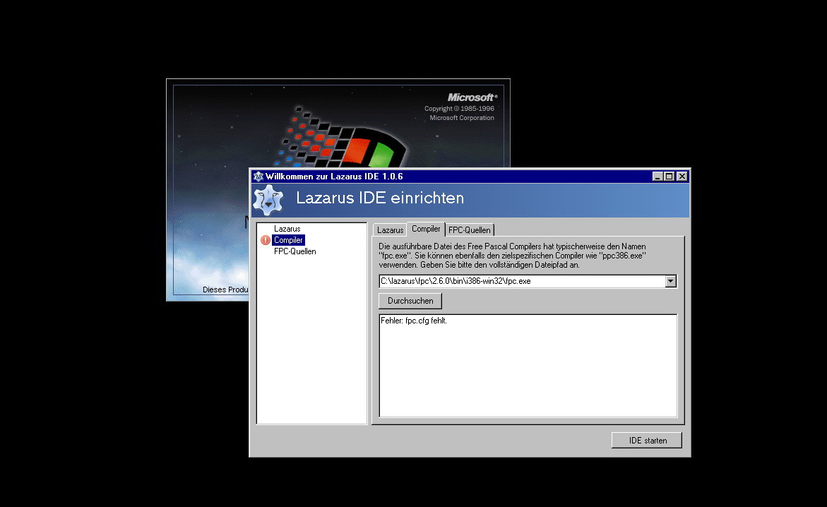 Aus Kostengründen setzen wir teils noch auf Windows NT 4, Lazarus lässt sich ohne weitere Schwierigkeiten installieren, aber beim Start vermisst der die TP Config Datei, wisst Ihr Rat?